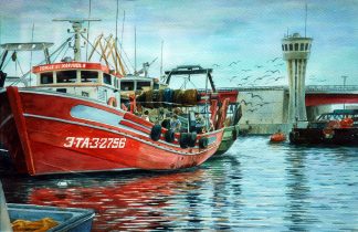 El Serrallo, barri mariner de Tarragona, amb unes aquarel·les on els colors blau marí, blau turquesa i blau cel conflueixen amb les olors salades de les barques i tot barrejant-se amb les gastronòmiques, com les del peix fregit o una bona cassolada de romesco. Quadres plens de reflexos i transparències. Aigües de mar, aigües d’aquarel·la.