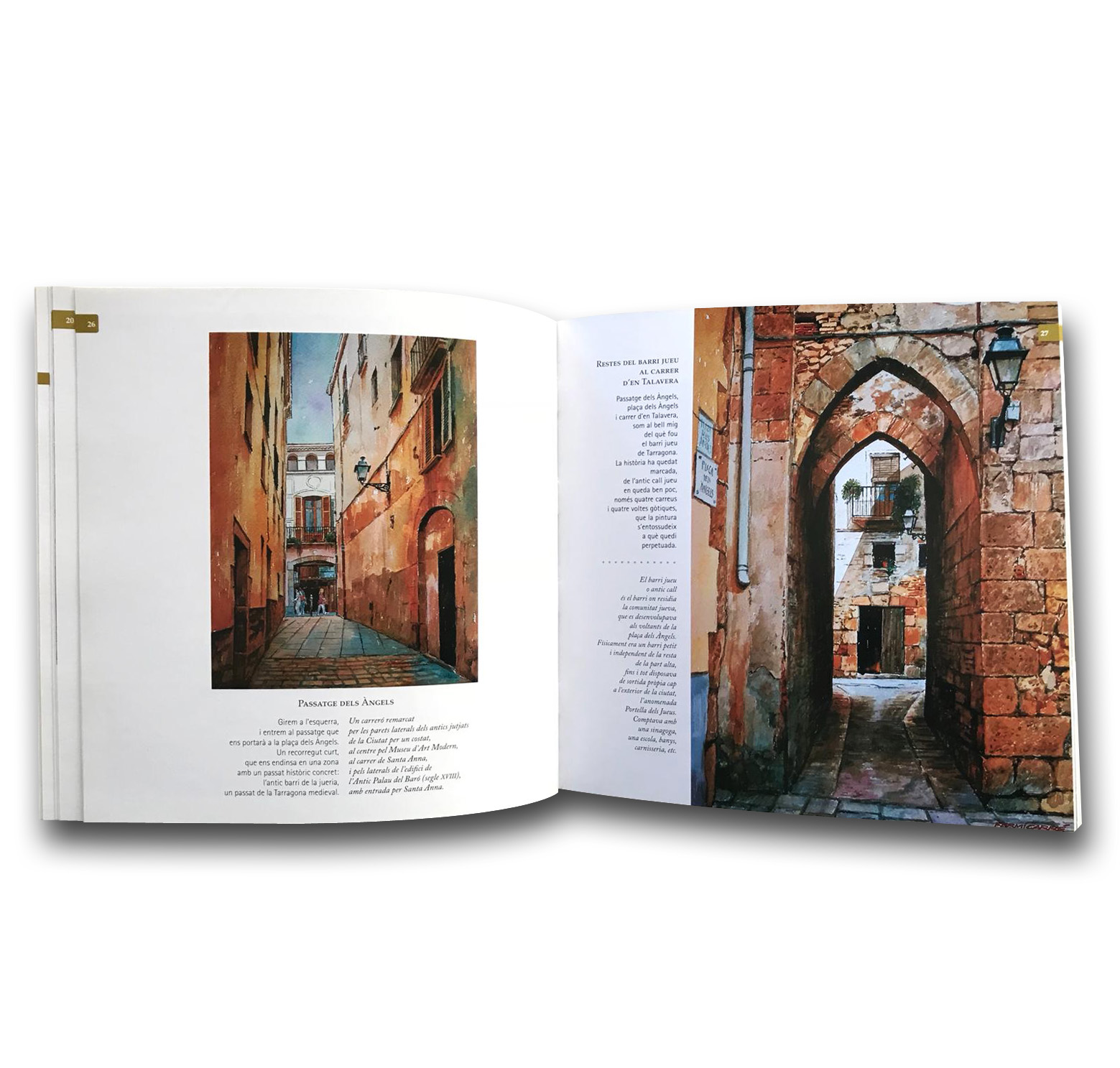 Aquest llibre és el resultat d’una exposició d’aquarel·les que es va celebrar amb motiu de la creació d’una nova zona lúdica i posada en marxa de Marina Port Tarraco, un nou port de iots de gran calat. L’exposició va ser un repte personal per tenir reunida en una sola exposició 108 aquarela·les en la que es veien interpretats amb el pinzell TOTS els carrera i places de la Part Alta de la ciutat de Tarragona. La mostra va romandre tres mesos oberta, i va poder ser visitada per nombrós públic.